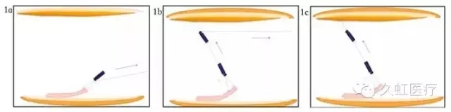 圖 1 金屬夾絲線聯(lián)合牽引技術(shù)的不同變體(1a. 直接絲線牽引法;1b. 利用「滑輪組」效應(yīng)的絲線牽引法;1c. 對側(cè)絲線牽引法)