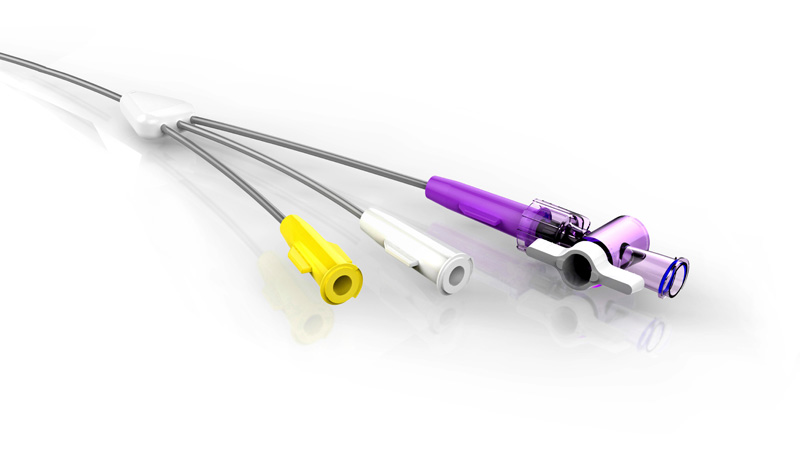 2. 三腔導(dǎo)管設(shè)計(導(dǎo)絲腔、注液腔、注氣腔),使插入和造影能夠順暢進(jìn)行。